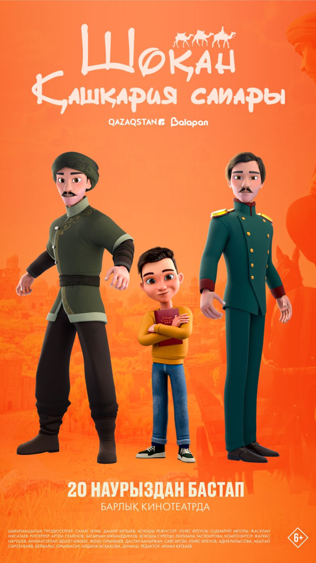 «Шоқан». «Қашқарияға саяхат» анимациялық фильмі белгілі ғалым Шоқан Уәлихановтың туғанына 190 жыл толуына орай дайындалды. Мультфильм балаларды ғалымның ең жақсы экспедицияларының бірі «Қашқарияға саяхат» оқиғасы бойынша қызықты әрі түсінікті түрде таныстырады. Оқиға 8 жасар Азат есімді баланың кенеттен өзін 1958 жылдан тауып алуынан басталады.